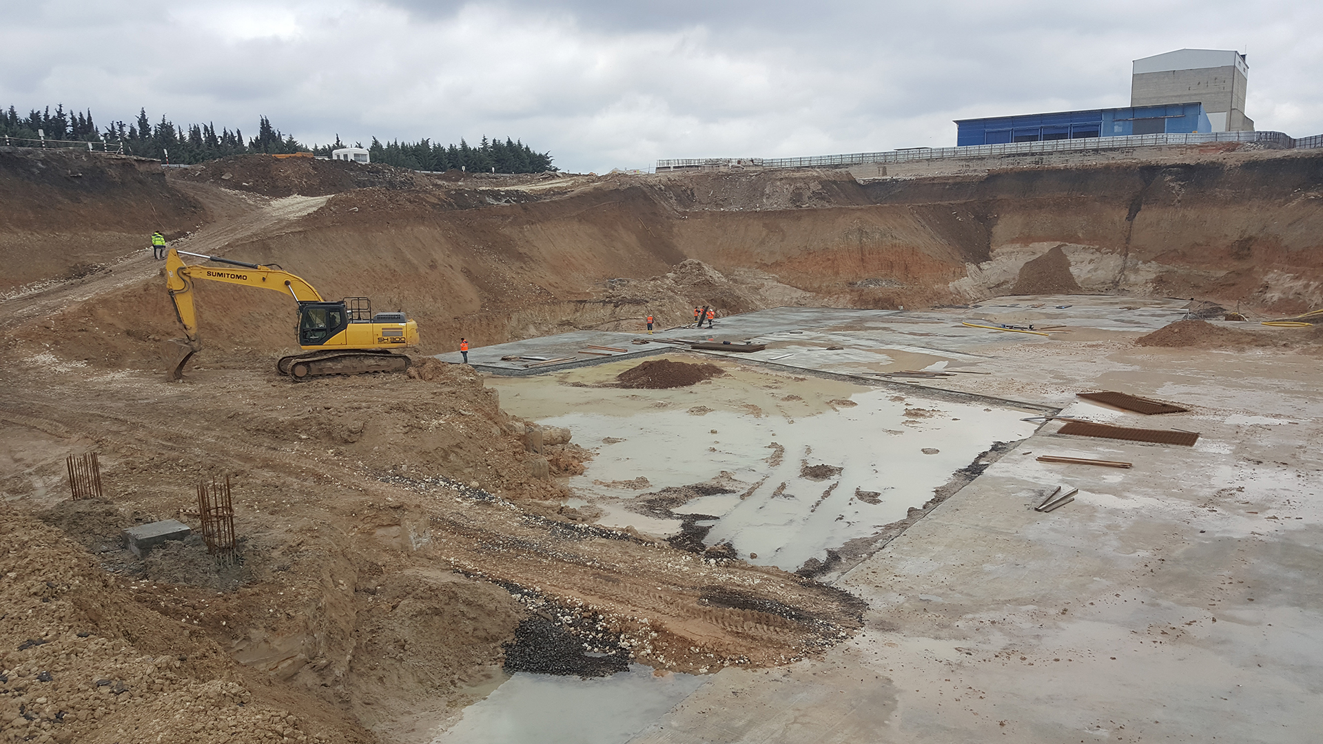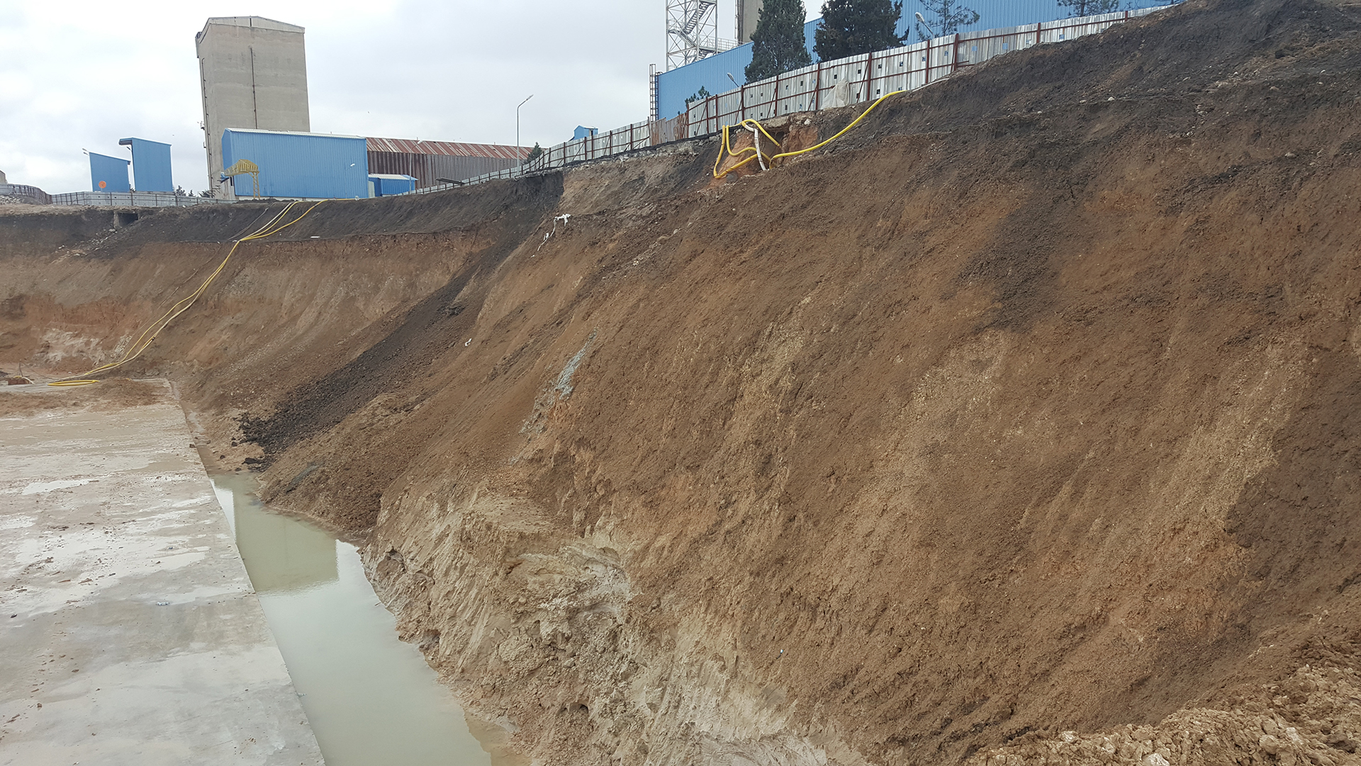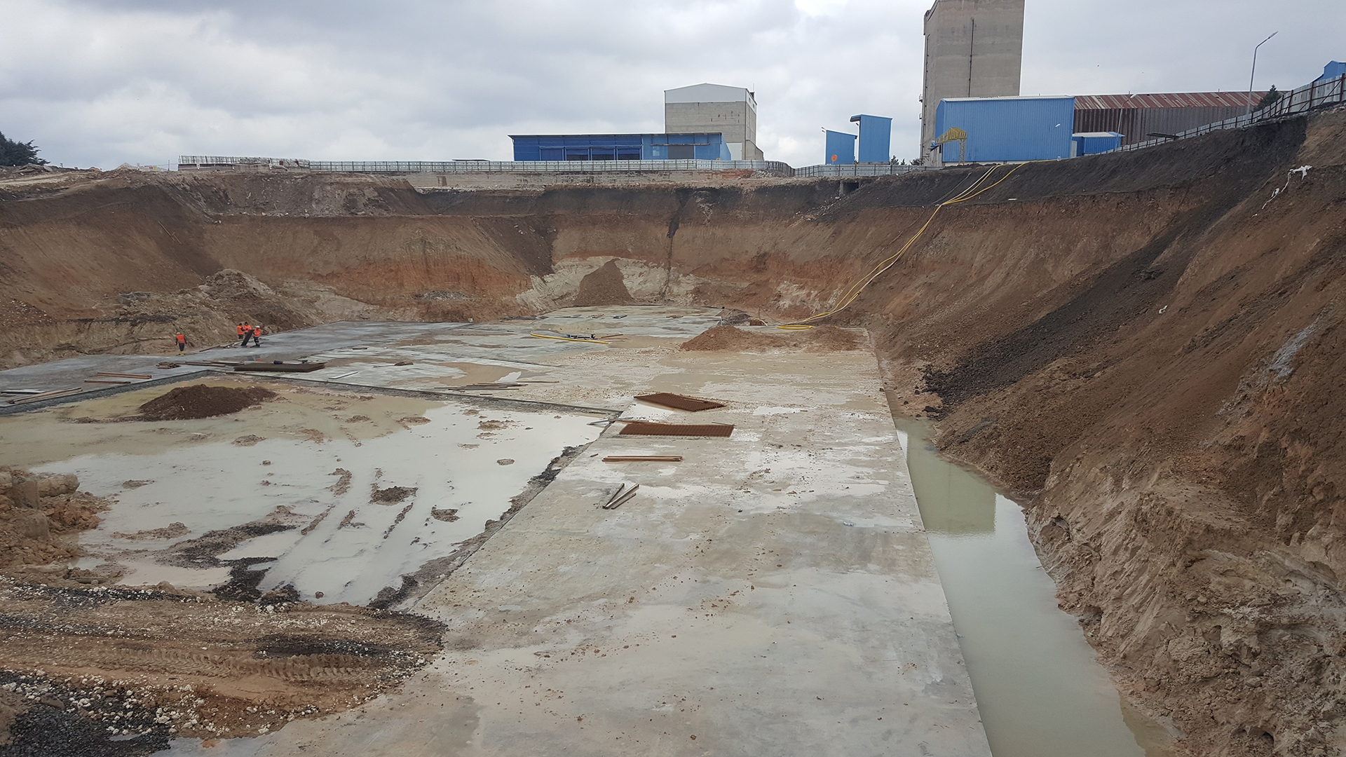 Fabrika içi 9 m derinliğinde püskürtme beton-ankrajlı geçici iksa yapılması